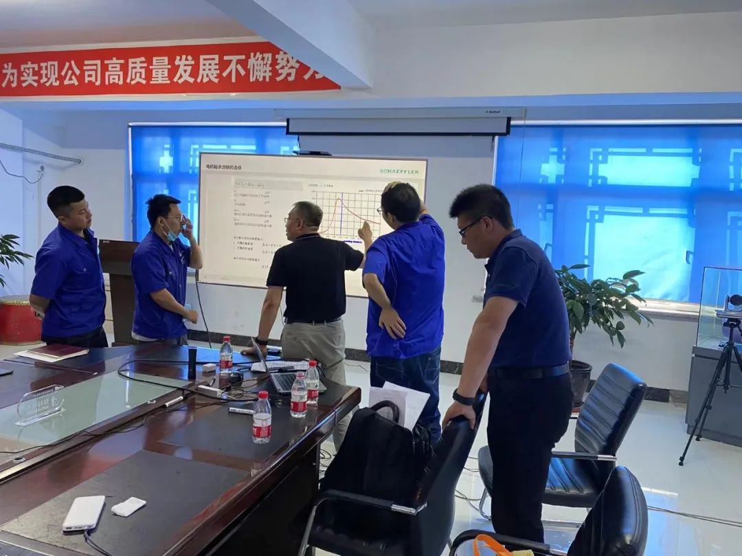 交流會上舍弗勒北方區經理田崇輝和張明義、張之濱兩位高級工程師分別與佳電設計研發部、市場部、質保部等部門就常用軸承類型及布置,軸承的選型計算方法,電機運輸過程中轉子的固定方式等多個問題進行了技術講解與交流。
